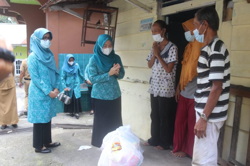 Jambi - Ketua TP PKK Provinsi Jambi Hj. Hesnidar Haris, S.E memberikan secara langsung bantuan