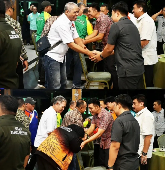 Batang Hari-Mhd. Fadhil Arief Bupati Batang Hari menyambut hangat dan penuh ramah tamah seluruh Pengurus dan peserta dalam acara Welcome Dinner Kejuaraan Nasional (Kejurnas) Karate GOKASI tahun 2026. Di Serambi Rumah Dinas Bupati Batang Hari. Jum'at (16/01).