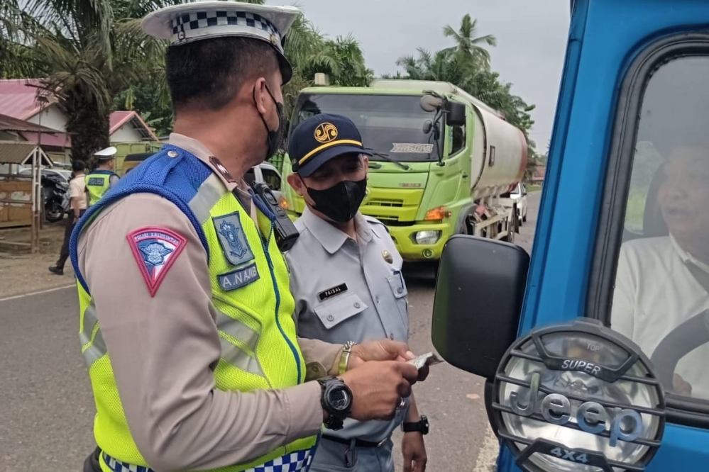 JAMBI- Jasa Rahraja Bersama Tim Samsat Muara Jambi Razia Di Titian Teras, Cek Masa Berlaku SWDKLLJ