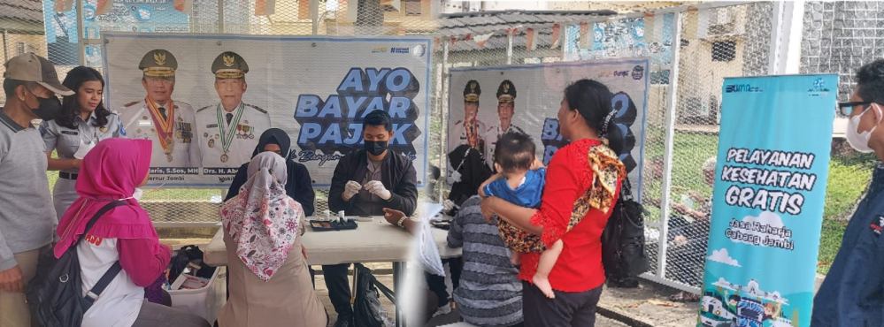 JAMBI - Warga Jambi bayar pajak di Samsat Polda Jambi dapat Kesehatan gratis dari Jasa Raharja