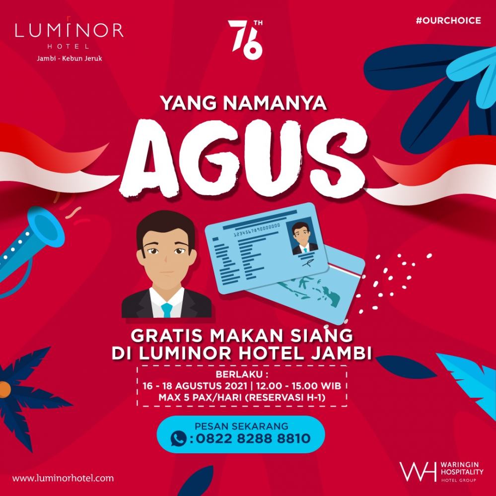 Jambi - Menyambut kemeriahan HUT RI di tahun 2021 ini, ada hadiah spesial dari Luminor Hotel