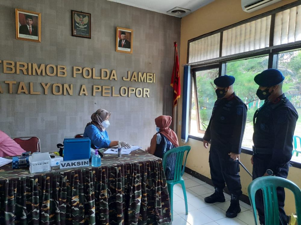 Jambi - Sat Brimob Polda Jambi menggelar pelaksanaan vaksinasi untuk warga Desa Sungai Bertam di