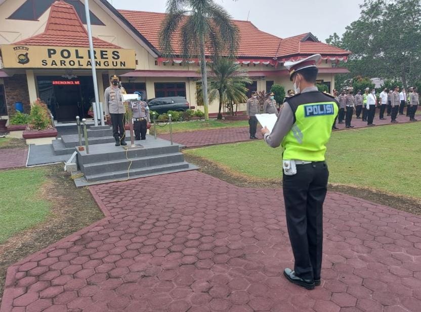SAROLANGUN - Personil kepolisian Polres Sarolangun melaksanakan kegiatan Apel Pagi yang bertempat