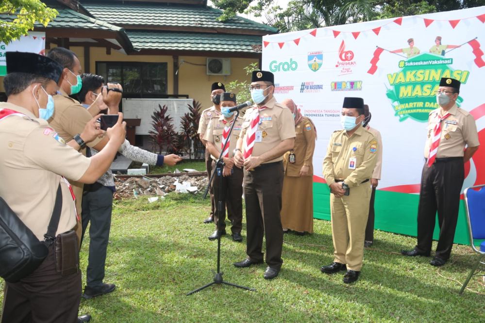 Jambi- Kwarda Gerakan Pramuka Provinsi Jambi H. Sudirman membuka kegiatan Vaksinasi Massal di