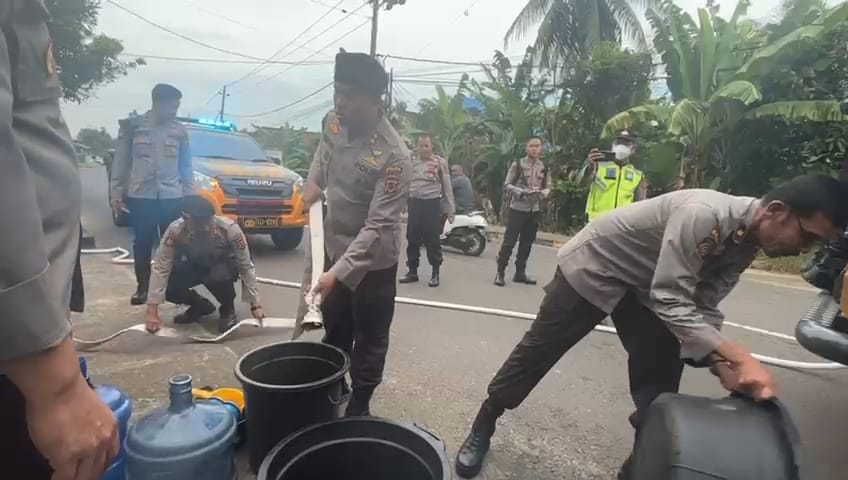 JAMBI - Polda Jambi merespon cepat setelah mendapatkan berita bahwa warga Jambi Kota Seberang yang terkendala krisis air bersih dikarenakan PDAM macet sudah Empat hari dikarenakan dicuri oleh warga.