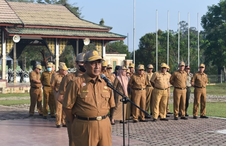 SAROLANGUN - Sekretaris Daerah (Sekda) Sarolangun Ir Endang Abdul Naseer Pimpin Apel Gabungan ASN