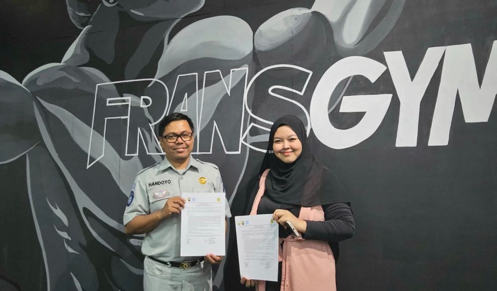 JAMBI- Jasa Raharja Jambi dan Frans Gym kolaborasi marchant dan brand exposure, rajin bayar SWDKLLJ