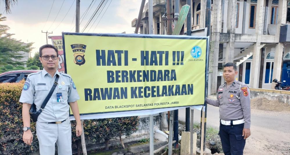 JAMBI- Jasa Raharja Cabang Jambi bersama Satlantas Polres Kota Jambi melakukan kegiatan pemasangan