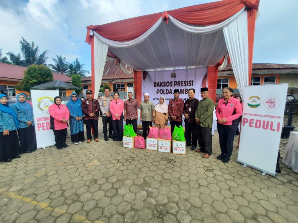 Pemberian Baksos tersebut langsung dipimpin oleh Kapolda Jambi, Irjen Pol Krisno Halomoan Siregar dan didampigi Ny Evi Krisno H Siregar serta para PJU Polda Jambi.