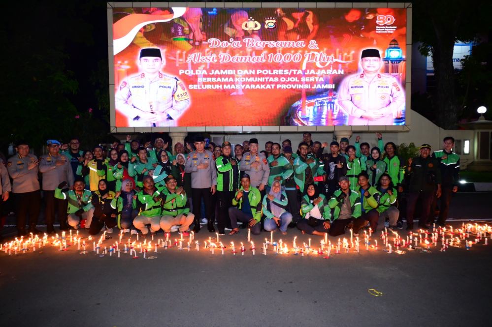 Jambi - Polda Jambi menggelar kegiatan doa bersama dan aksi damai 1000 lilin bersama forkopimda dan