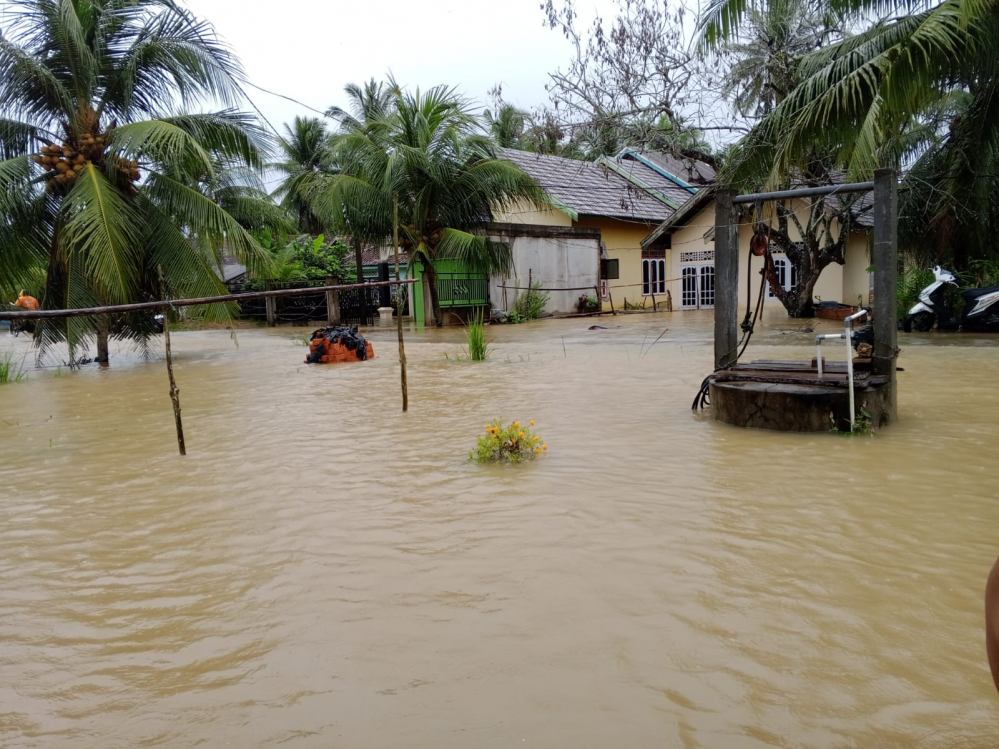 Sebanyak puluhan rumah di desa bajubang laut terendam banjir tepatnya di RT 01,02,03 dan 07 hal ini