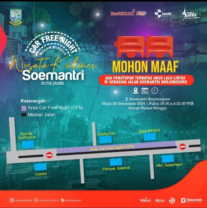 Jambi - Setelah sukses menerapkan Car Free Day (CFD) dan Car Free Night (CFN) di Kawasan Wisata