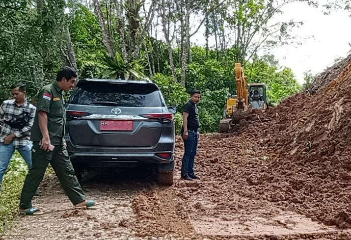 Merangin - Begitu mendapat informasi dari warga, badan jalan yang menghubungkan Desa Renah Medan
