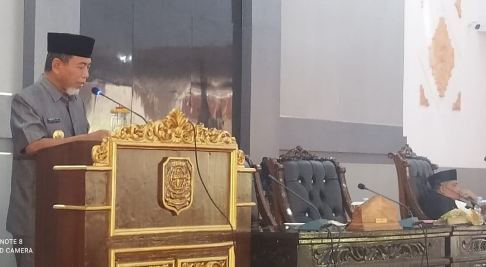 Merangin - Bupati Merangin H Mashuri menyampaikan jawaban pemerintah, terhadap enam ranperda